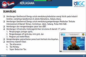 Posisi geothermal energy sebagai EBT sangat penting dan perlu mendapat prioritas pengembangan terutama di wilayah 3T karena tidak intermittent, memiliki potensi yang besar di dunia dan zero pollution.