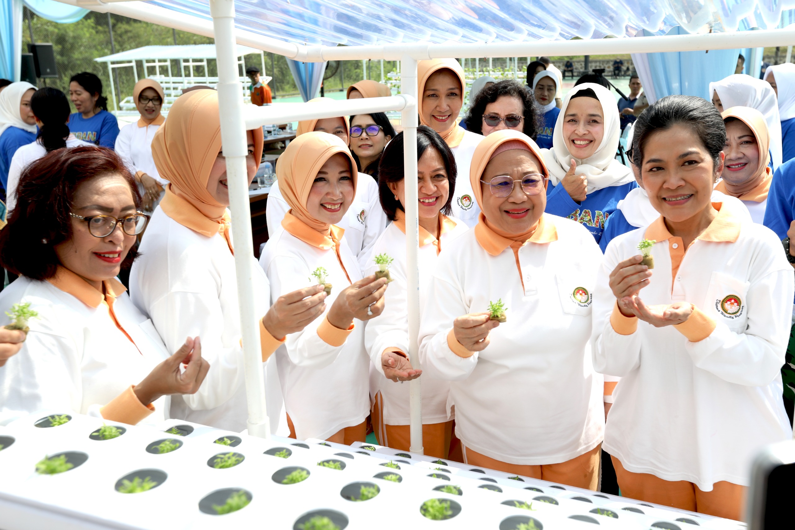 Dalam sambutannya, Ibu Etty Sjafrie Sjamsoeddin menekankan bahwa pemanfaatan inovasi pertanian yang sederhana, sehat, dan berkelanjutan seperti urban farming melalui metode hidroponik merupakan solusi strategis dalam menjawab tantangan keterbatasan lahan di wilayah perkotaan. Selain berkontribusi pada pemenuhan kebutuhan pangan keluarga, praktik ini juga dinilai mampu meningkatkan kualitas gizi, membangun pola hidup sehat, serta menciptakan lingkungan yang lebih hijau dan berkelanjutan.
