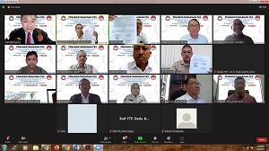 tas Teknologi Pertahanan Universitas Pertahanan RI Laksda TNI Dr. Ir. Kasih Prihantoro, S.E., M.M., M.Tr.(Han)., IPU., menandatangani Perjanjian Kerja Sama (PKS) dengan PT. Nanggala Kencana Rekatama Indonesia (NKRI), PT. Infoglobal Teknologi Semesta (ITS), PT. Turingsense Asia Lab (TSAL) melalui daring zoom meeting. Kamis (5/1).