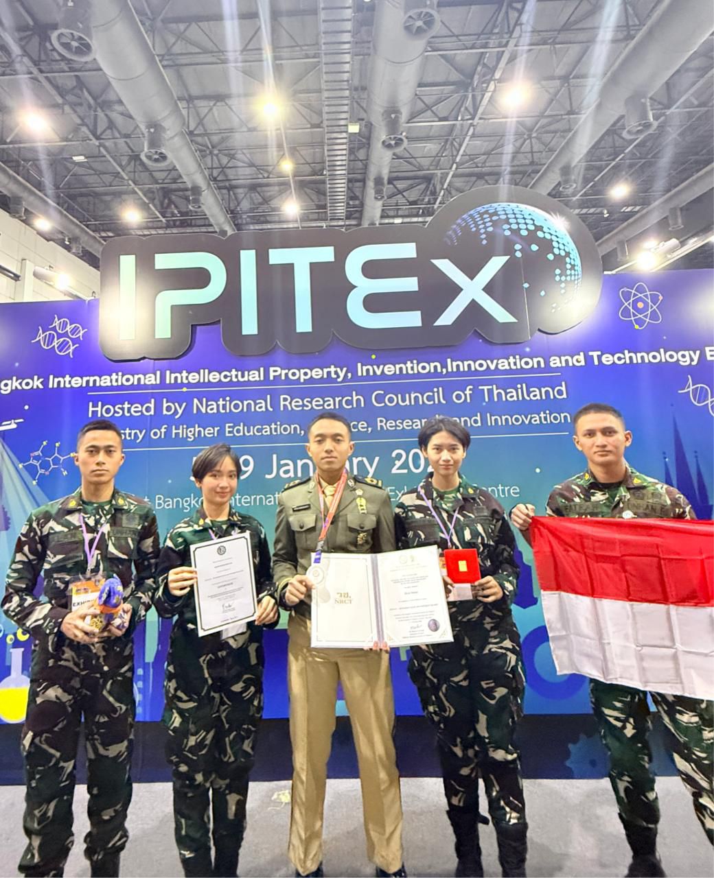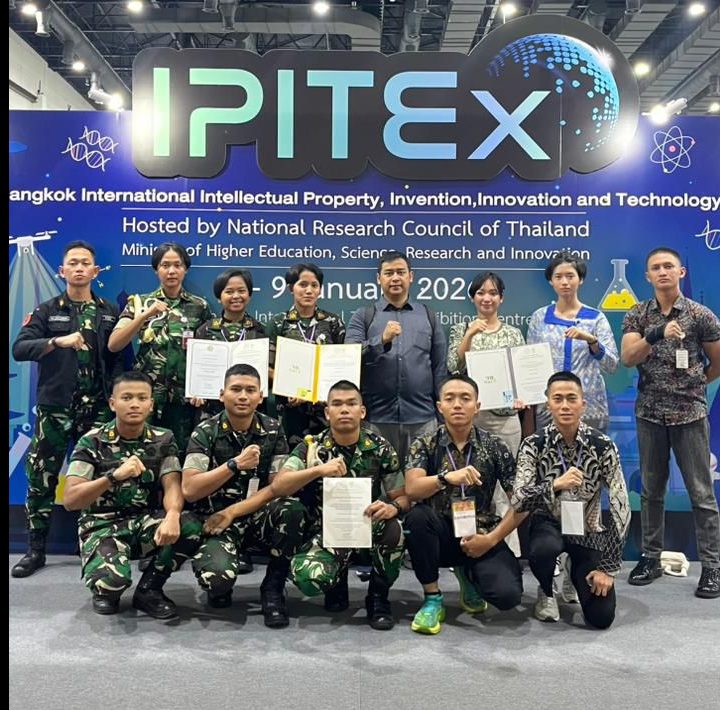 Bogor — Universitas Pertahanan Republik Indonesia (Unhan RI) kembali mengukir prestasi internasional melalui keberhasilan Kadet Mahasiswanya meraih medali emas pada ajang IPITEX, Thailand Inventors Day 2026 yang diselenggarakan pada 5–9 Januari 2026 di Bangkok, Thailand. Prestasi ini menjadi bukti keberhasilan pendidikan pertahanan berbasis inovasi dan teknologi, sejalan dengan arahan strategis Presiden Republik Indonesia, Jenderal TNI (Purn.) Prabowo Subianto, dalam memperkuat kemandirian pertahanan nasional. Capaian ini juga mencerminkan peran strategis Rektor Universitas Pertahanan Republik Indonesia, Letnan Jenderal TNI (Purn.) Dr. Anton Nugroho, M.M.D.S., M.A., dalam membangun ekosistem pendidikan pertahanan yang unggul dan berdaya saing global. (Minggu, 11/1).