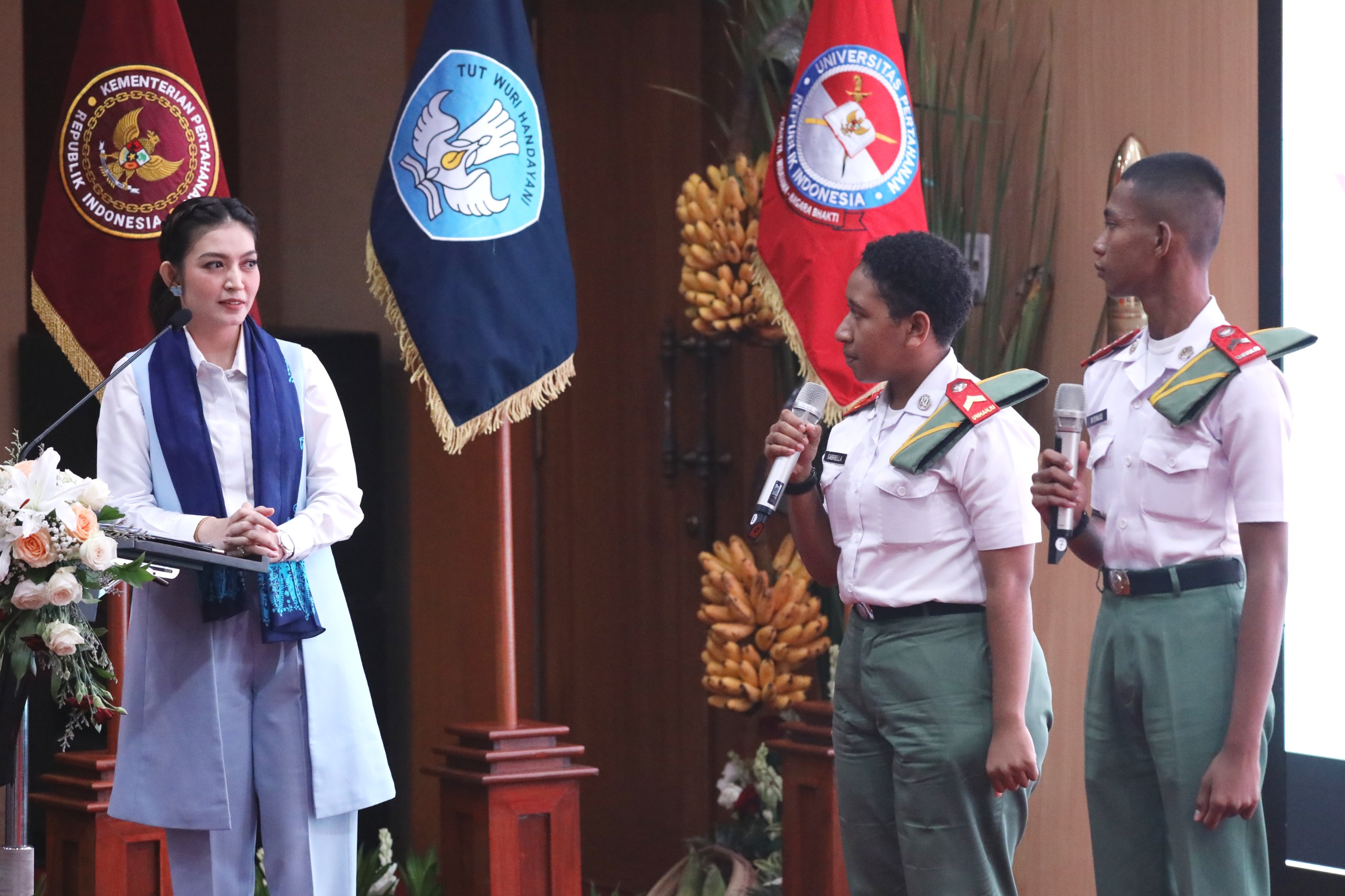 Rektor Unhan RI dan Ketua Bidang V SERUNI KMP Ibu Etty Sjafrie Sjamsoeddin dampingi Ibu Wakil Presiden RI Tegaskan Visi Presiden RI Menuju Generasi Emas Indonesia 2045 Berkarakter, Inovatif, dan Berdaya Saing Global.