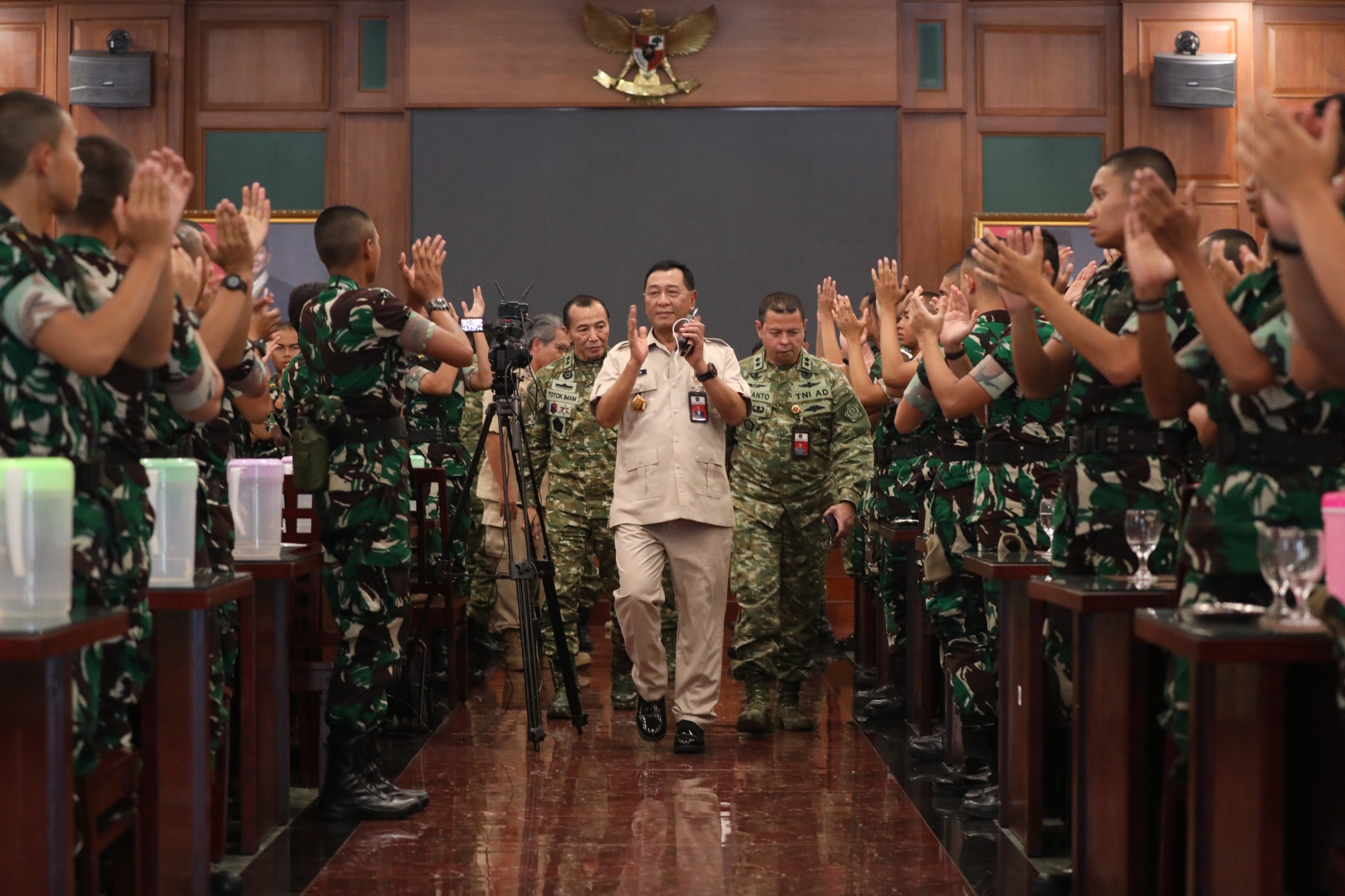 Bogor – Rektor Universitas Pertahanan Republik Indonesia (Unhan RI), Letjen TNI (Purn.) Dr. Anton Nugroho, M.M.D.S., M.A., menegaskan “Kadet Mahasiswa Unhan RI dipersiapkan menjadi pemimpin masa depan. Jaga motivasimu, jaga hatimu, dan jadilah kebanggaan bangsa”. Hal ini disampaikan pada kegiatan Jam Komandan dan Pengarahan kepada seluruh Kadet Mahasiswa S-1 Unhan RI, yang turut dihadiri oleh Jajaran Pejabat Eselon I Unhan RI bertempat Ruang Makan di Kampus Bhineka Tunggal Ika Unhan RI, Sentul. (Jumat, 7/11).