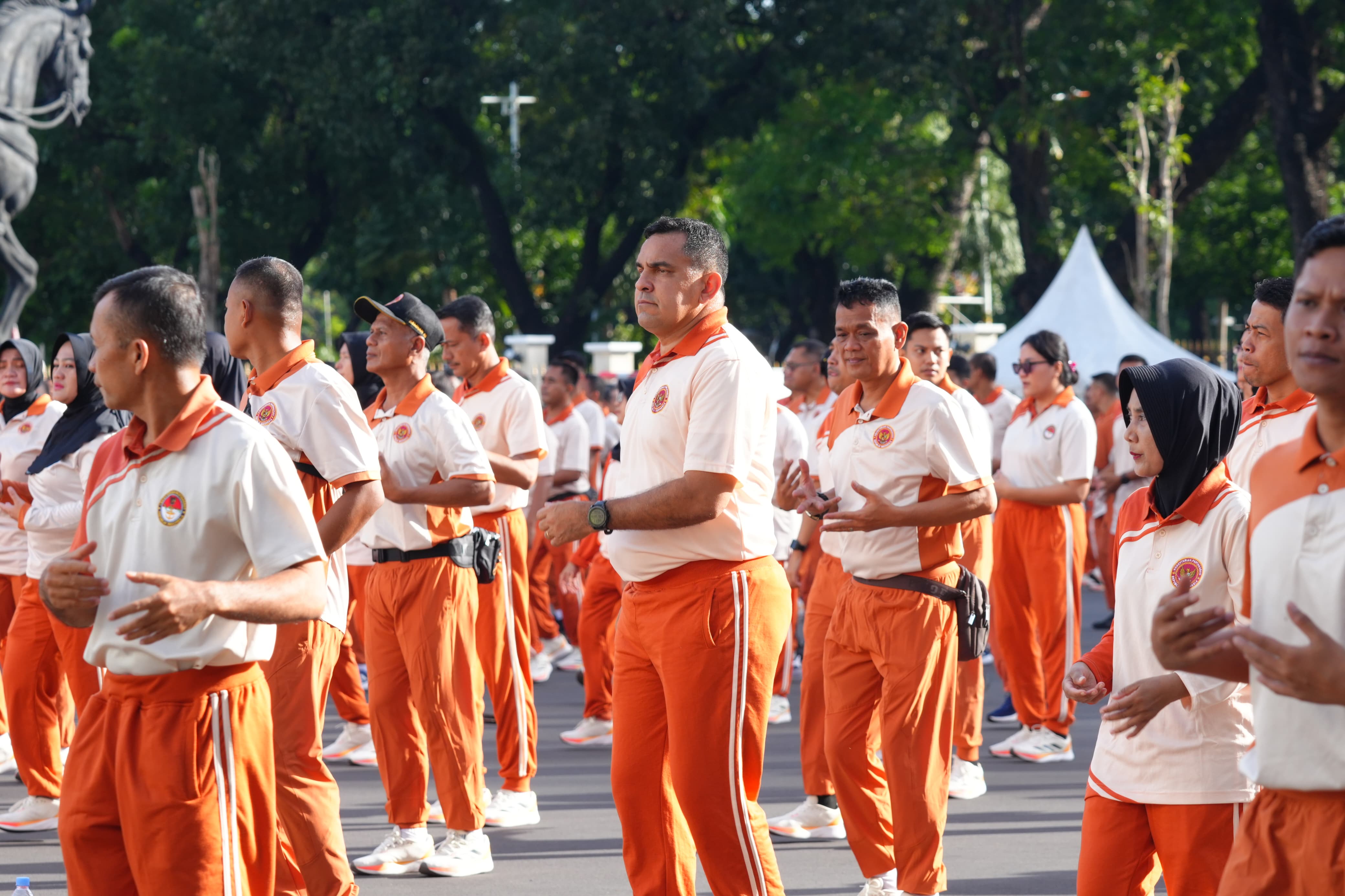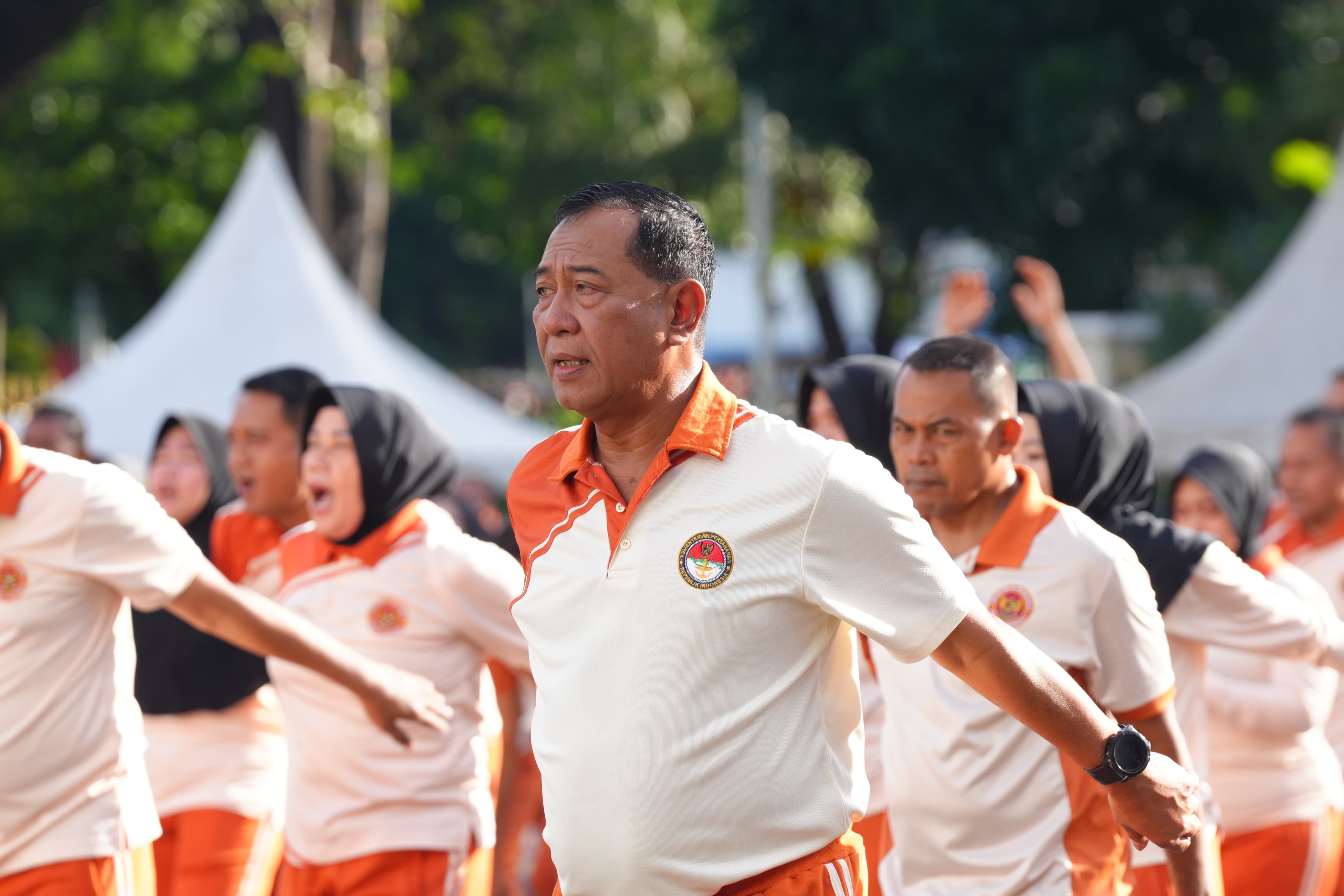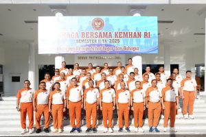 Jakarta — Rektor Universitas Pertahanan Republik Indonesia (Unhan RI), Letnan Jenderal TNI (Purn.) Dr. Anton Nugroho, M.M.D.S., M.A., mengikuti kegiatan Olahraga Bersama seluruh Pegawai Kementerian Pertahanan Republik Indonesia (Kemhan RI). Kegiatan Olahraga Bersama Pegawai Kemhan RI Semester II Tahun Anggaran 2025 diawali dengan pelaksanaan Apel Pagi yang dipimpin oleh Inspektur Jenderal Kementerian Pertahanan RI, Letnan Jenderal TNI Dr. Rui F. G. P. Duarte, M.A., mewakili Sekretaris Jenderal Kementerian Pertahanan RI, Letnan Jenderal TNI Tri Budi Utomo, S.E. Kegiatan tersebut diikuti oleh para pejabat Eselon I dan Eselon II Kemhan RI serta seluruh pegawai di lingkungan Kementerian Pertahanan, bertempat di Lapangan Bhinneka Tunggal Ika, Kemhan RI. (Selasa, 16/12).