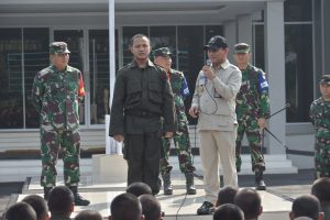 Bogor – Rektor Universitas Pertahanan Republik Indonesia (Unhan RI), Letnan Jenderal TNI (Purn.) Jonni Mahroza, S.I.P., M.A., M.Sc., Ph.D., didampingi Komandan Komando Latihan VI SPPI, Laksamana Pertama TNI Yos Sumiarsa, S.E., M.Si., serta Wakil Komandan Komando Latihan VI SPPI, Kolonel Pnb Meito Datau, M.Han., melaksanakan kunjungan dan peninjauan langsung terhadap pelaksanaan Pendidikan Dasar Militer (Diksarmil) bagi peserta Program Sarjana Penggerak Pembangunan Indonesia (SPPI) Batch-3 Tahun Akademik 2025, di Pangkalan TNI Angkatan Udara Sulaiman (Lanud Sulaiman), Bandung. Kamis (8/5).