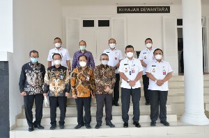 Rektor Unhan RI saat menerima kunjungan Audiensi Kepala Badan Pengembangan dan Pembinaan Bahasa Kemendikbudristek, didampingi oleh Ketua Lembaga Penelitian dan Pengabdian kepada Masyarakat Unhan RI Mayjen TNI Sammy Ferrijana, S.Sos., M.Si., Dekan Fakultas Strategi Pertahanan Unhan RI Mayjen TNI Dr. Priyanto, S.I.P., M.Si (Han), Wakil Dekan Fakultas Strategi Pertahanan Unhan RI Laksma TNI Dr. Ir. Beni Rudiawan., S.E., M.M., M.Si (Han)., Kepala Biro Umum Unhan RI Brigjen TNI Ir. Zainal Muhtar, S.M., M.M., IPU., Kabag Kerja sama Biro AK Unhan RI Kolonel Lek Ir. Rujito D. Asmoro, GDipl in DS, M.A., RCDS., CPHCM., CIPA.