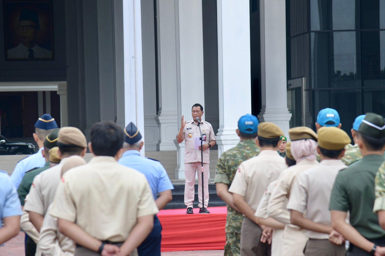 Bogor – Rektor Universitas Pertahanan Republik Indonesia (Unhan RI), Letnan Jenderal TNI (Purn.) Dr. Anton Nugroho, M.M.D.S., M.A., memimpin Apel Gabungan yang diikuti oleh pimpinan, dosen, tenaga kependidikan, serta mahasiswa di lingkungan Unhan RI. Apel gabungan ini menjadi momentum refleksi awal tahun sekaligus penguatan komitmen institusi dalam meningkatkan kinerja, efisiensi, dan kebersamaan sivitas akademika. Senin (5/1).