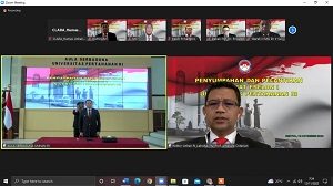 Bogor – Rektor Unhan RI Laksamana Madya TNI, Prof. Dr. Ir. Amarulla Octavian, S.T., M.Sc., DESD, ASEAN Eng., memimpin Upacara Pengangkatan Sumpah dan Pelantikan Jabatan Pejabat Eselon I dan Dosen Tetap Unhan RI. Kegiatan ini berlangsung secara daring dan luring di Aula Serbaguna Gd. Auditorium Kampus Bela Negara, Kawasan IPSC Sentul, Jawa Barat. Sabtu, (12/11).
