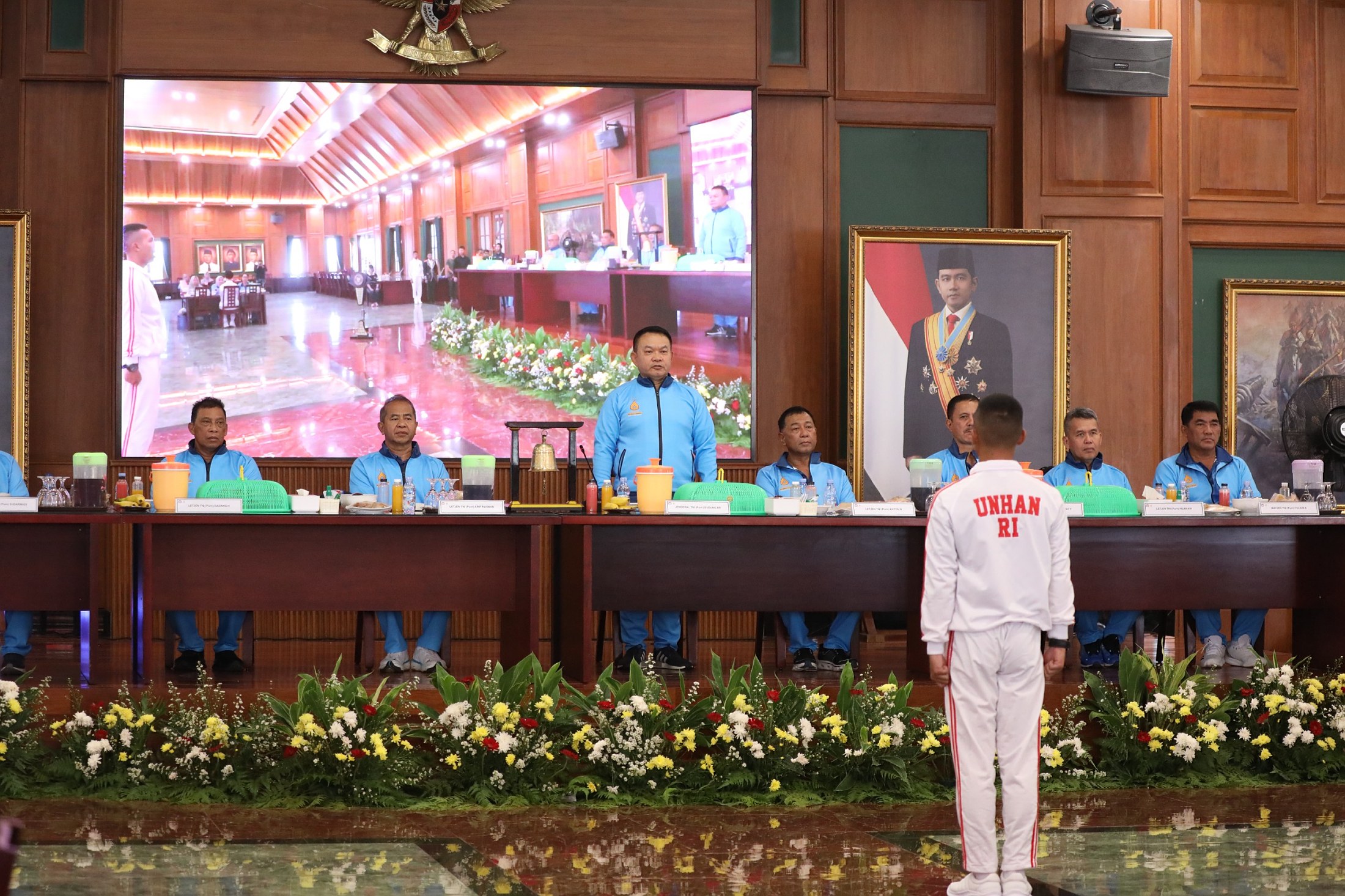 Bogor — Rektor Universitas Pertahanan Republik Indonesia (Unhan RI) Letnan Jenderal TNI (Purn.) Dr. Anton Nugroho, M.M.D.S., M.A. menyambut langsung kehadiran Jenderal TNI (Purn.) Prof. Dr. H. Dudung Abdurachman, S.E., M.M. dalam kegiatan Reuni Akademi Militer Abituren 1988 B (Radar 88). Kegiatan ini dihadiri oleh para abituren Akademi Militer 1988 B antara lain Letnan Jenderal TNI (Purn.) Dr. Hilman Hadi, S.I.P., M.B.A., M.Han., Letnan Jenderal TNI (Purn.) Drs. Alfred Denny Djoike Tuejeh, S.H., M.Si., Letnan Jenderal TNI (Purn.) Dr. Dadang Hendrayudha, M.A., dan Mayor Jenderal TNI (Purn.) Yulius Selvanus, S.E., beserta keluarga dan para kadet mahasiswa Unhan RI. Kegiatan ini bertempat di Gedung Rektorat Kampus Bhinneka Tunggal Ika, Unhan RI, Sentul, Bogor. (Sabtu, 1/10).