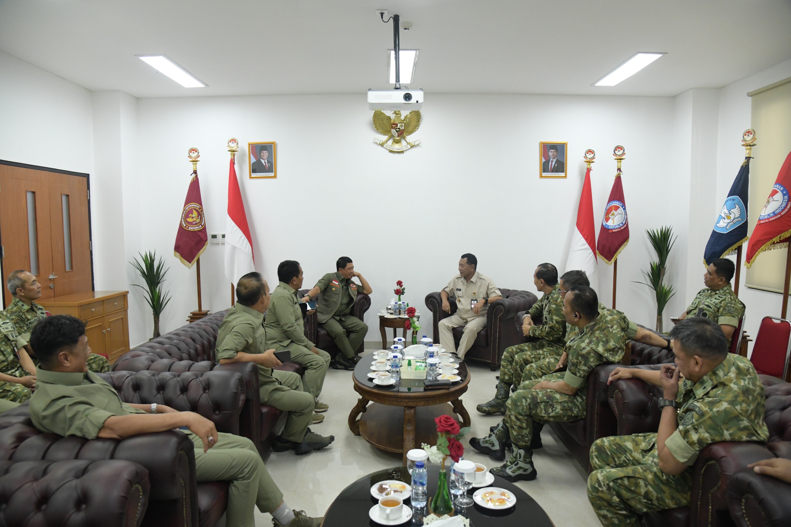 Bogor — Rektor Universitas Pertahanan Republik Indonesia (Unhan RI), Letnan Jenderal TNI (Purn.) Dr. Anton Nugroho, M.M.D.S., M.A., menerima kunjungan kehormatan Kepala Badan Nasional Penanggulangan Bencana (BNPB), Letnan Jenderal TNI Dr. Suharyanto, S.Sos., M.M. Kehadiran Kepala BNPB ini dalam rangka memberikan kuliah umum bertema “Penanggulangan Bencana dalam Perspektif Ketahanan Nasional” kepada seluruh sivitas akademika Unhan RI. Kegiatan penerimaan kunjungan ini bertempat di Ruang Tamu Rektor Kampus Bhineka Tunggal Ika Unhan RI, Sentul. (Jumat, 7/11).
