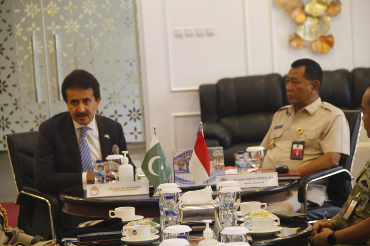 Sementara itu, Duta Besar Pakistan H.E. Zahid Hafeez Chaudhri dalam kesempatan tersebut, menyampaikan ucapan terima kasih kepada Rektor Unhan RI beserta jajarannya yang telah menerima kunjungannya. Dalam kesempatan ini Dubes Pakistan juga menekankan pentingnya sinergi antara Pakistan dan Indonesia dalam menghadapi dinamika keamanan global. Beliau juga menyampaikan kesiapan Pakistan untuk memperkuat kerja sama di berbagai bidang pertahanan, termasuk pelatihan, penelitian bersama, dan produksi pertahanan kolaboratif dengan mitra strategis di Indonesia seperti PT Pindad dan PT Dirgantara Indonesia.