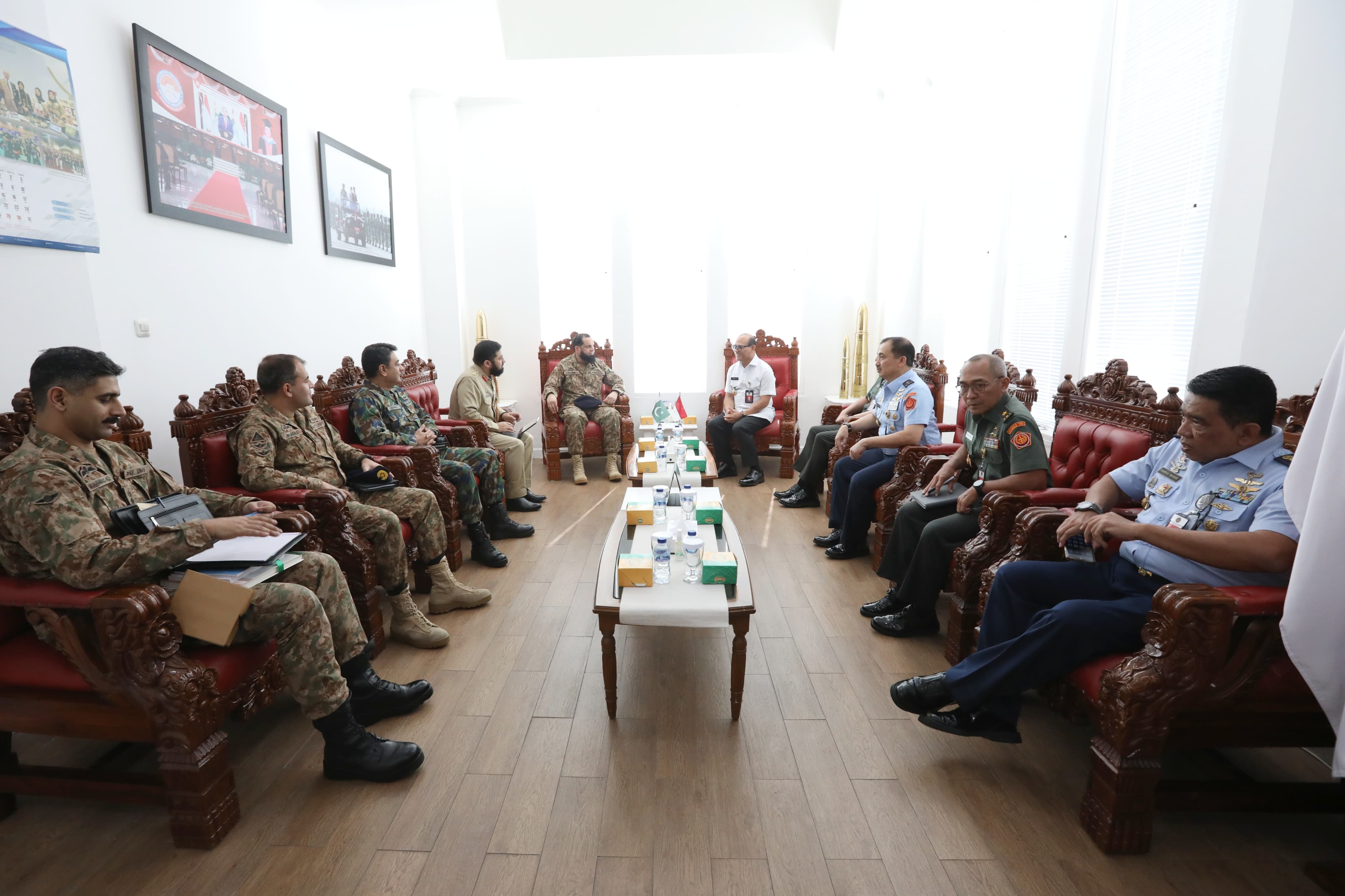 Dalam sambutannya, Rektor Unhan RI menegaskan komitmen institusional untuk memperkuat hubungan bilateral Indonesia–Pakistan melalui pengembangan kolaborasi strategis antar universitas pertahanan. Rektor Unhan RI menyampaikan bahwa kerja sama internasional merupakan pilar penting dalam menghadapi dinamika tantangan global yang semakin kompleks. Sebagai dua negara sahabat dengan sejarah hubungan yang kokoh, Indonesia dan Pakistan memiliki peran strategis dalam mendorong stabilitas kawasan dan mendukung tatanan dunia yang damai. Rektor Unhan RI juga memperkenalkan secara singkat tentang Unhan RI yang saat ini membina lebih dari 3.000 mahasiswa dalam 12 program studi unggulan, meliputi bidang farmasi, ilmu medis, teknologi pertahanan, matematika militer, hingga kecerdasan buatan—seluruhnya dirancang dengan pendekatan militer yang relevan dengan kebutuhan pertahanan negara. Rektor Unhan RI juga menegaskan Unhan RI terus berfokus pada pengembangan ilmu pengetahuan dan teknologi pertahanan yang aplikatif untuk mendukung agenda strategis nasional. Melalui kunjungan ini, Rektor Unhan RI berharap dapat memperluas kerja sama global, memperkuat kontribusi dalam diplomasi pertahanan, serta mempererat sinergi antar lembaga pendidikan militer dalam mewujudkan perdamaian dan keamanan berkelanjutan.