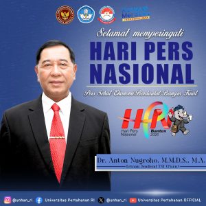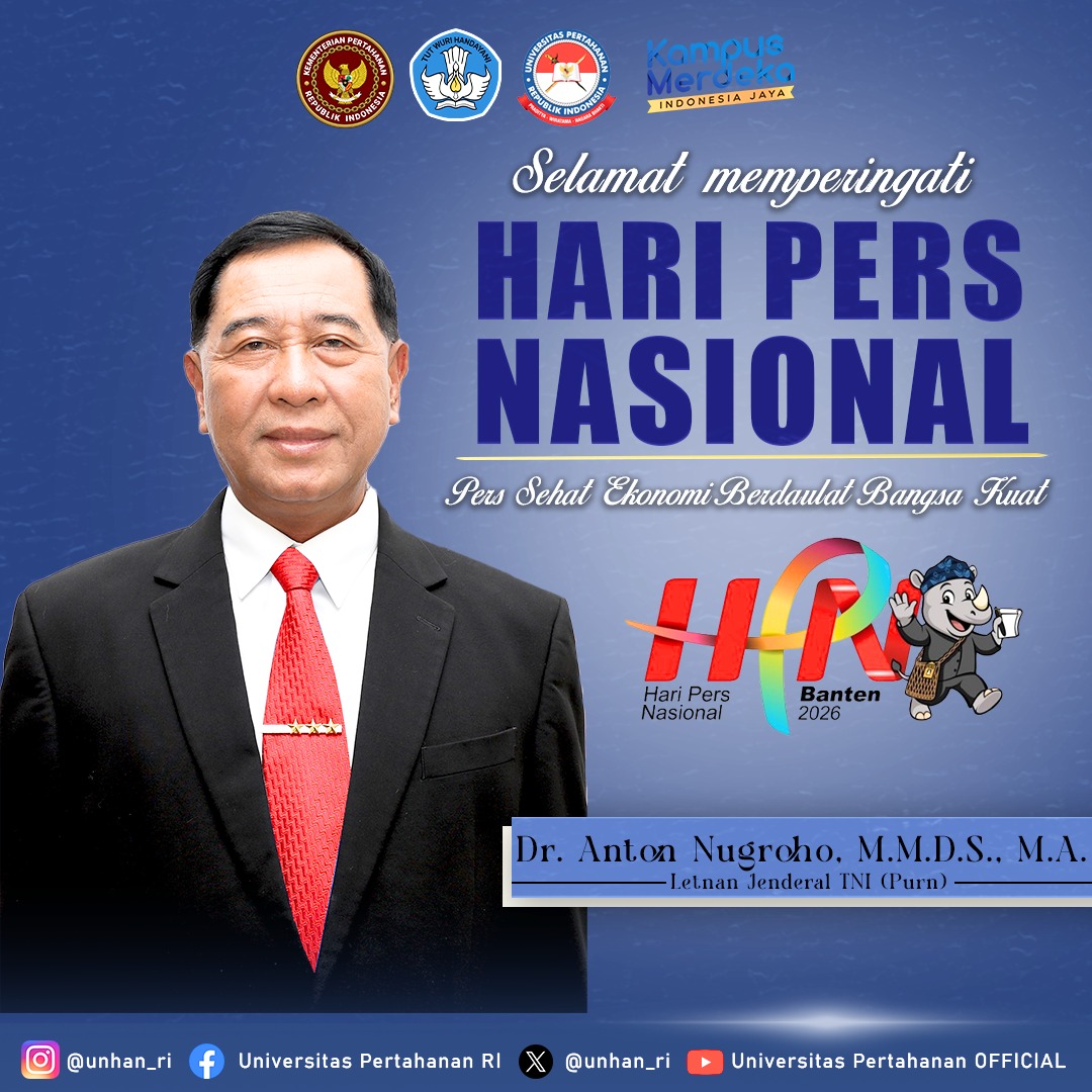 Rektor Universitas Pertahanan Republik Indonesia, Letnan Jenderal TNI (Purn.) Dr. Anton Nugroho, M.M.D.S., M.A., mengucapkan “Selamat Hari Pers Nasional 2026, Pers Sehat, Ekonomi Berdaulat, Bangsa Kuat”.
