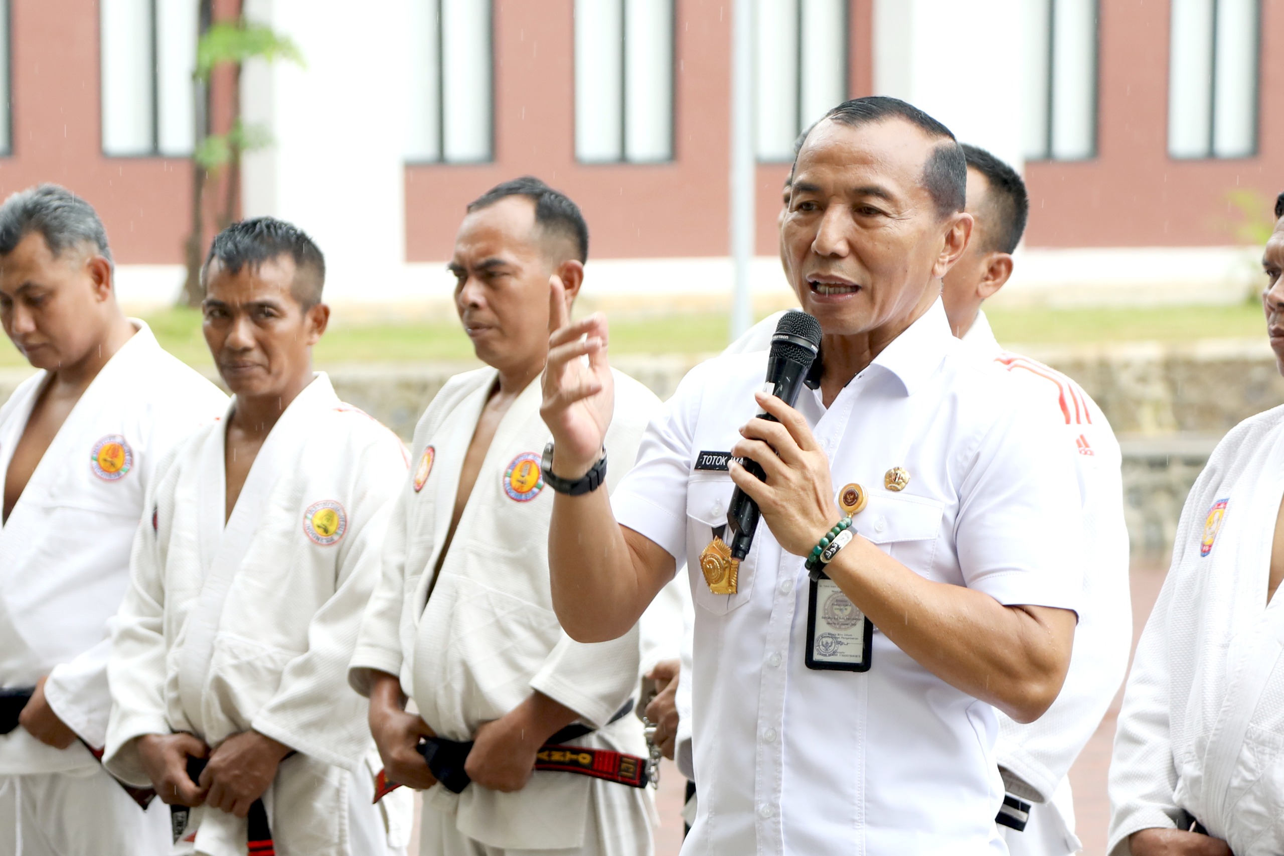 Bogor — Rektor Universitas Pertahanan Republik Indonesia (Unhan RI), Letnan Jenderal TNI (Purn.) Dr. Anton Nugroho, M.M.D.S., M.A., yang diwakili oleh Wakil Rektor Bidang Kemahasiswaan dan Alumni, Mayor Jenderal TNI Dr. Totok Imam Santoso, S.Sos., S.I.P., M.Tr.(Han)., didampingi Kepala Biro Akademik dan Kemahasiswaan (Karo Akademik) Unhan RI Brigadir Jenderal TNI Yudianto Putrajaya, S.E., M.M., dan Ses LPPN Brigadir Jenderal TNI Trisno Widodo, S.H., M.Han., menerima kunjungan Ketua Umum Pengurus Besar Jujitsu Indonesia (PBJI) Dr. Dedy Triharjanto dalam rangka sosialisasi bela diri jujitsu kepada kadet mahasiswa Unhan RI. (Kamis, 19/2).