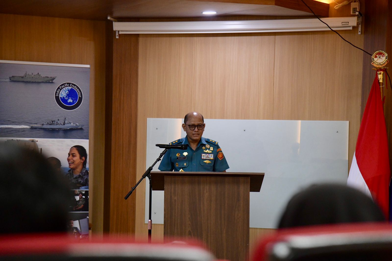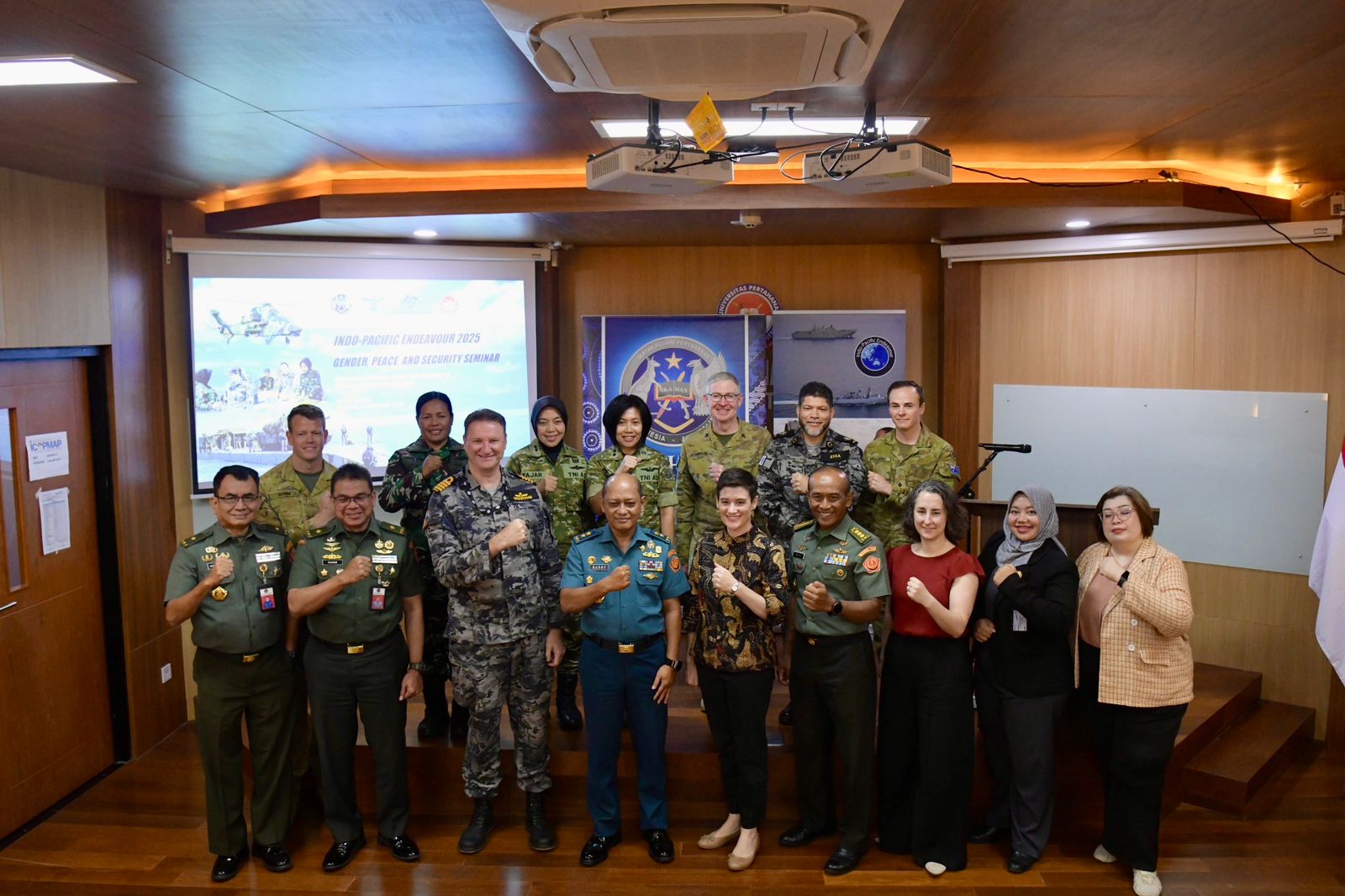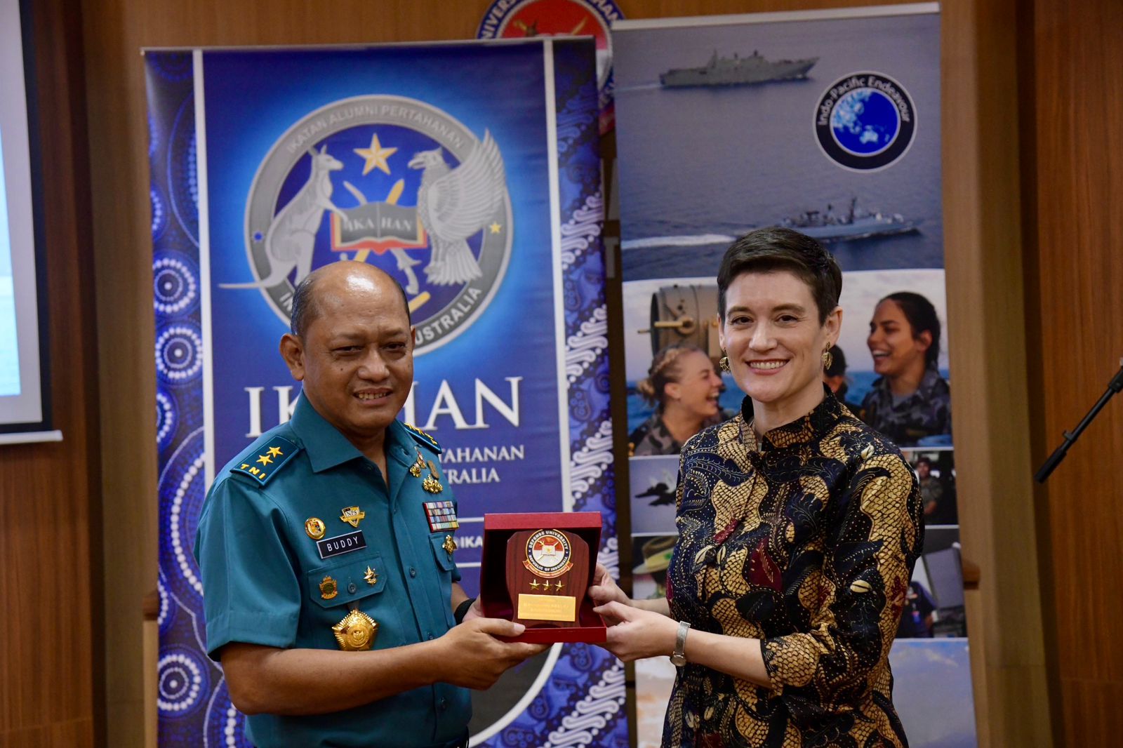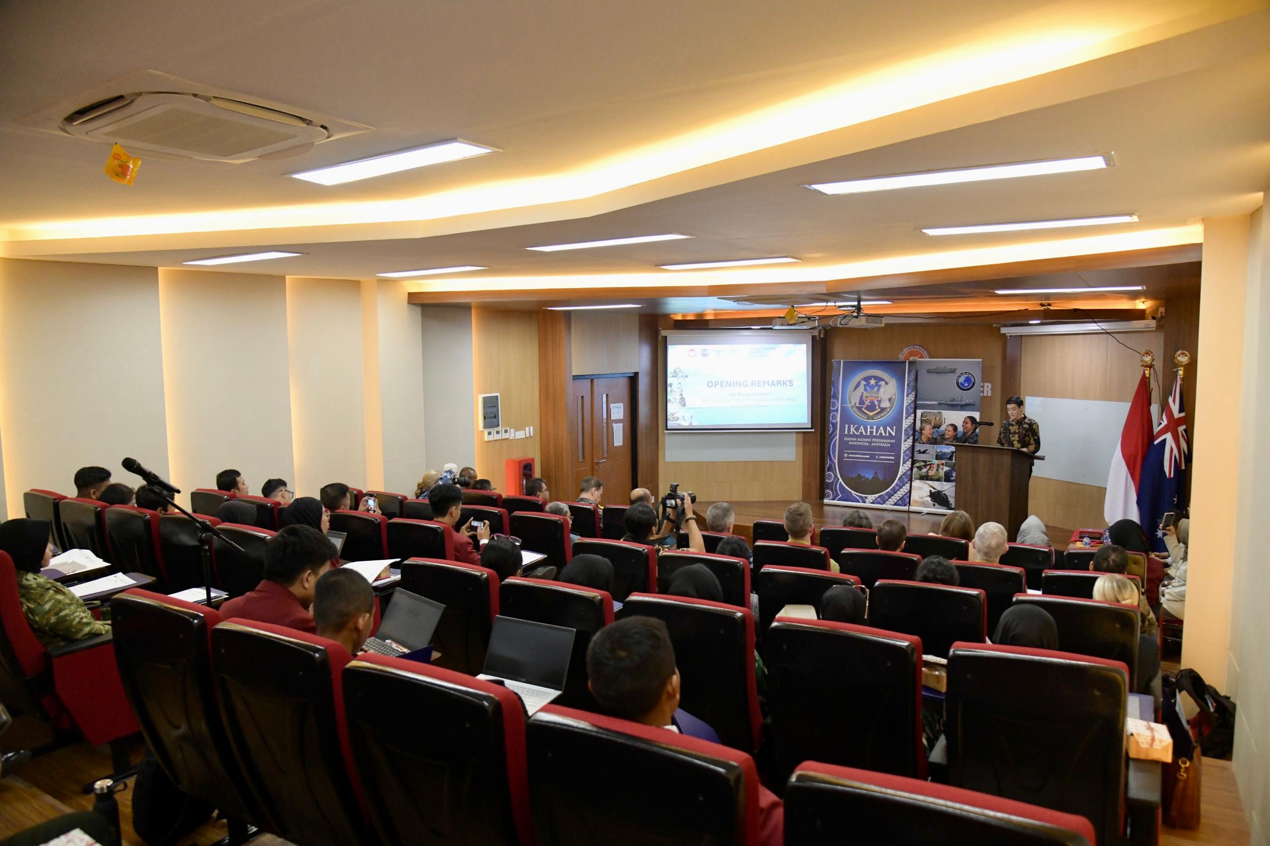 Bogor — Rektor Universitas Pertahanan Republik Indonesia (Unhan RI), Letnan Jenderal TNI (Purn.) Dr. Anton Nugroho, M.M.D.S., M.A., diwakili oleh Wakil Rektor Bidang Kerja Sama, Kelembagaan, Inovasi, dan Teknologi, Laksamana Muda TNI Buddy Suseto, S.E., M.Si.(Han)., bersama Ms. Nicola Campion selaku Minister-Counsellor for Political and Strategic Communications, Kedutaan Besar Australia di Jakarta, resmi membuka kegiatan Ikatan Alumni Pertahanan Indonesia Australia (IKAHAN) melalui Lokakarya Gender, Peace, and Security (GPS).Kegiatan ini menjadi bagian dari rangkaian Indo-Pacific Endeavour 2025 dan menandai semakin eratnya kerja sama pertahanan Indonesia–Australia, khususnya dalam pengembangan perspektif keamanan yang inklusif dan berorientasi masa depan. Pelaksanaan Lokakarya ini bertempat di Ruang Theater Fakultas Farmasi Militer (FFM), Lantai 3, Kampus Bhineka Tunggal Ika Unhan RI, Sentul. (Selasa, 2/12).