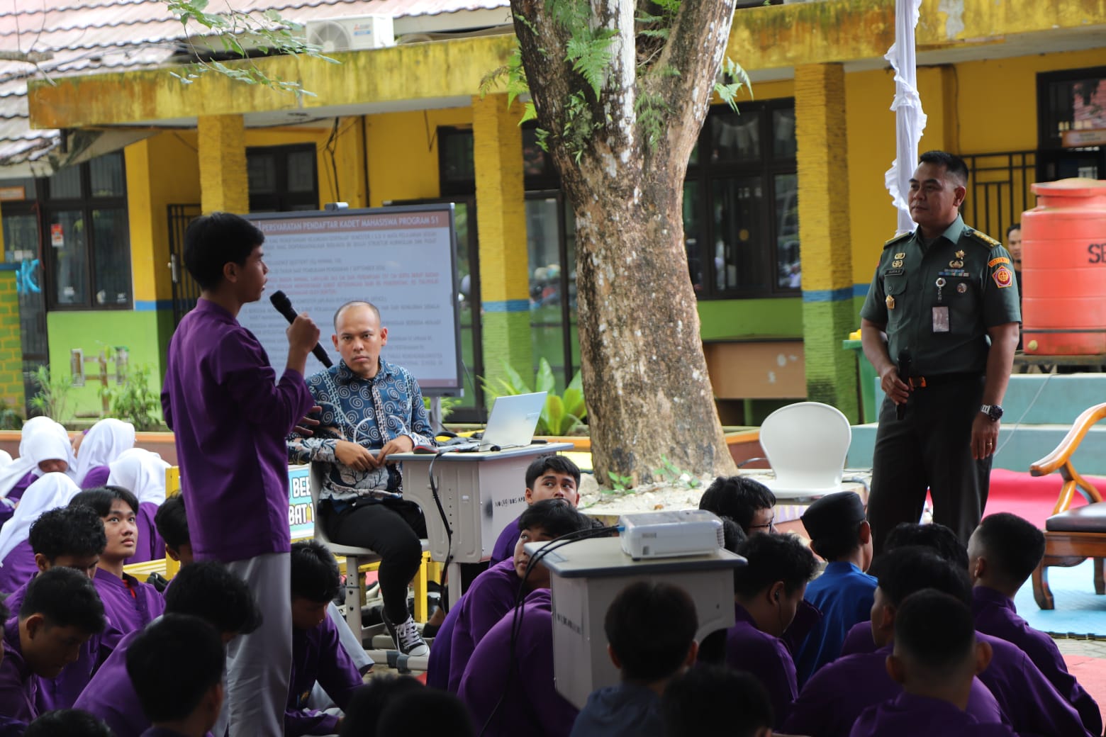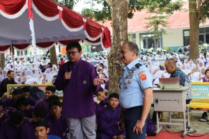 Dalam sesi utama, Marsekal Pertama TNI Dedy Ghazi Elsyaf, S.Sos., M.Si., memaparkan materi wawasan kebangsaan kepada 1.173 siswa-siswi dari 32 kelas, dengan penekanan pada penguatan karakter bela negara, nasionalisme, integritas, serta kesadaran terhadap dinamika tantangan strategis bangsa di era global. Selanjutnya, Kolonel Czi Surya Supratman, S.T., M.MT., CIT., menyampaikan secara komprehensif sosialisasi program beasiswa dan berbagai program studi di Unhan RI, termasuk sistem seleksi penerimaan mahasiswa baru, keunggulan kurikulum berbasis sains dan teknologi pertahanan, serta fasilitas pendidikan dan pembinaan karakter yang terintegrasi.