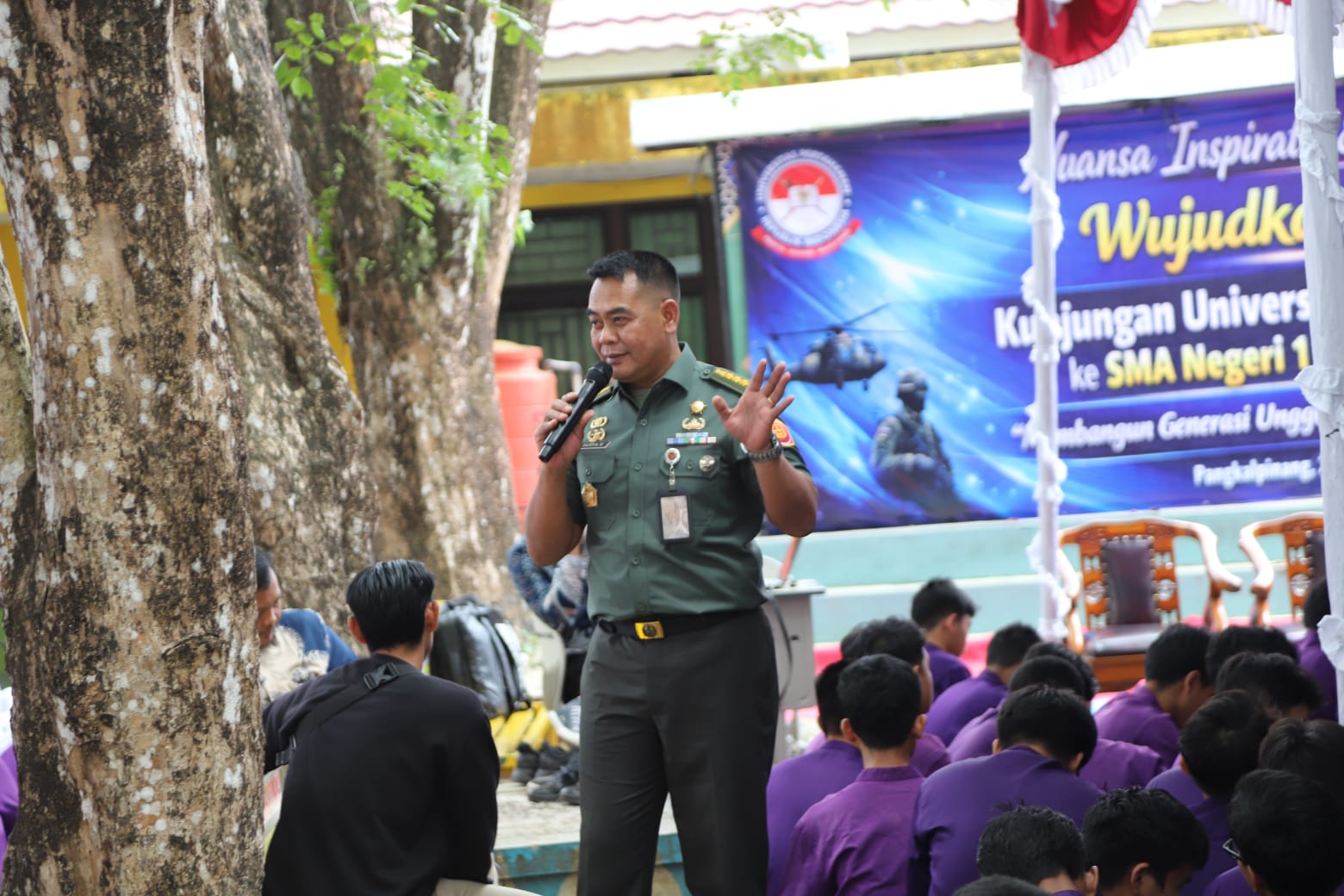 Kegiatan dipimpin oleh Kepala Biro Perencanaan, Kerja Sama, dan Hubungan Masyarakat (Karorenkermahumas) Unhan RI, Marsekal Pertama TNI Dedy Ghazi Elsyaf, S.Sos., M.Si., didampingi Kepala Bagian Humas dan Tata Usaha Unhan RI, Kolonel Czi Surya Supratman, S.T., M.MT., CIT., serta disambut oleh Kepala Sekolah SMAN 1 Pangkal Pinang, Jumani, S.Pd., M.Pd., beserta jajaran guru.