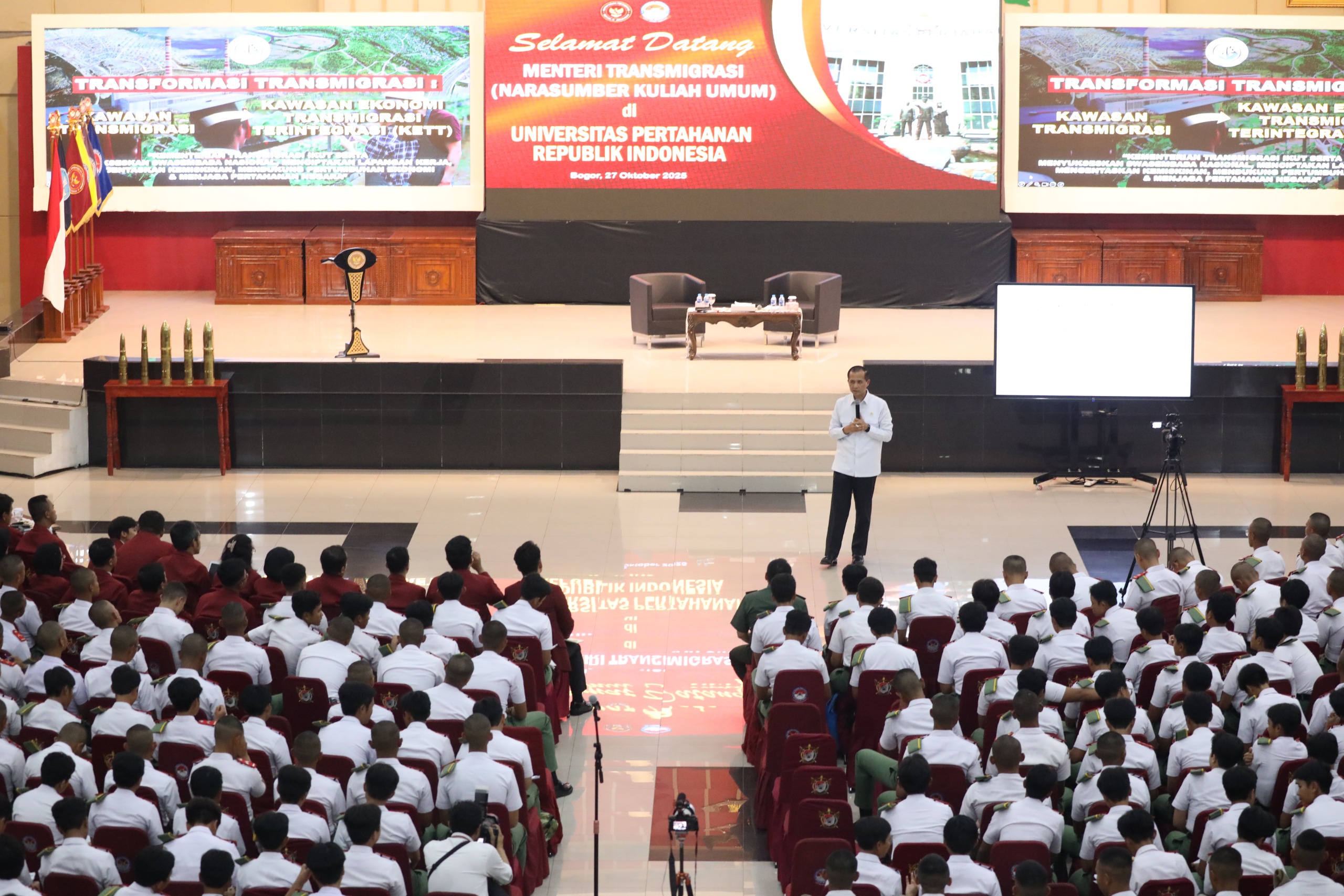 Bogor – Rektor Universitas Pertahanan Republik Indonesia (Unhan RI), Letnan Jenderal TNI (Purn.) Dr. Anton Nugroho, M.M.D.S., M.A., diwakili oleh Wakil Rektor Bidang Akademik dan Perencanaan Unhan RI, Mayor Jenderal TNI Dr. R. Nugraha Gumilar, M.Sc., menerima langsung kehadiran Menteri Transmigrasi Republik Indonesia (Mentrans RI), Dr. H. Muhammad Iftitah Sulaiman Suryanagara, S.H., M.Si. dalam rangka kegiatan kuliah umum kepada sivitas akademika Unhan RI. Kegiatan kuliah umum Mentrans RI dengan tema Transformasi Transmigrasi. Kegiatan ini diikuti oleh seluruh pejabat Eselon I, II, III, Dosen, Kadet Mahasiswa Unhan RI dan Mahasiswa Pascasarjana Unhan RI, yang berlangsung di aula Merah Putih, Kampus Bela Negara Unhan RI Sentul-Bogor. (Senin, 27/10)
