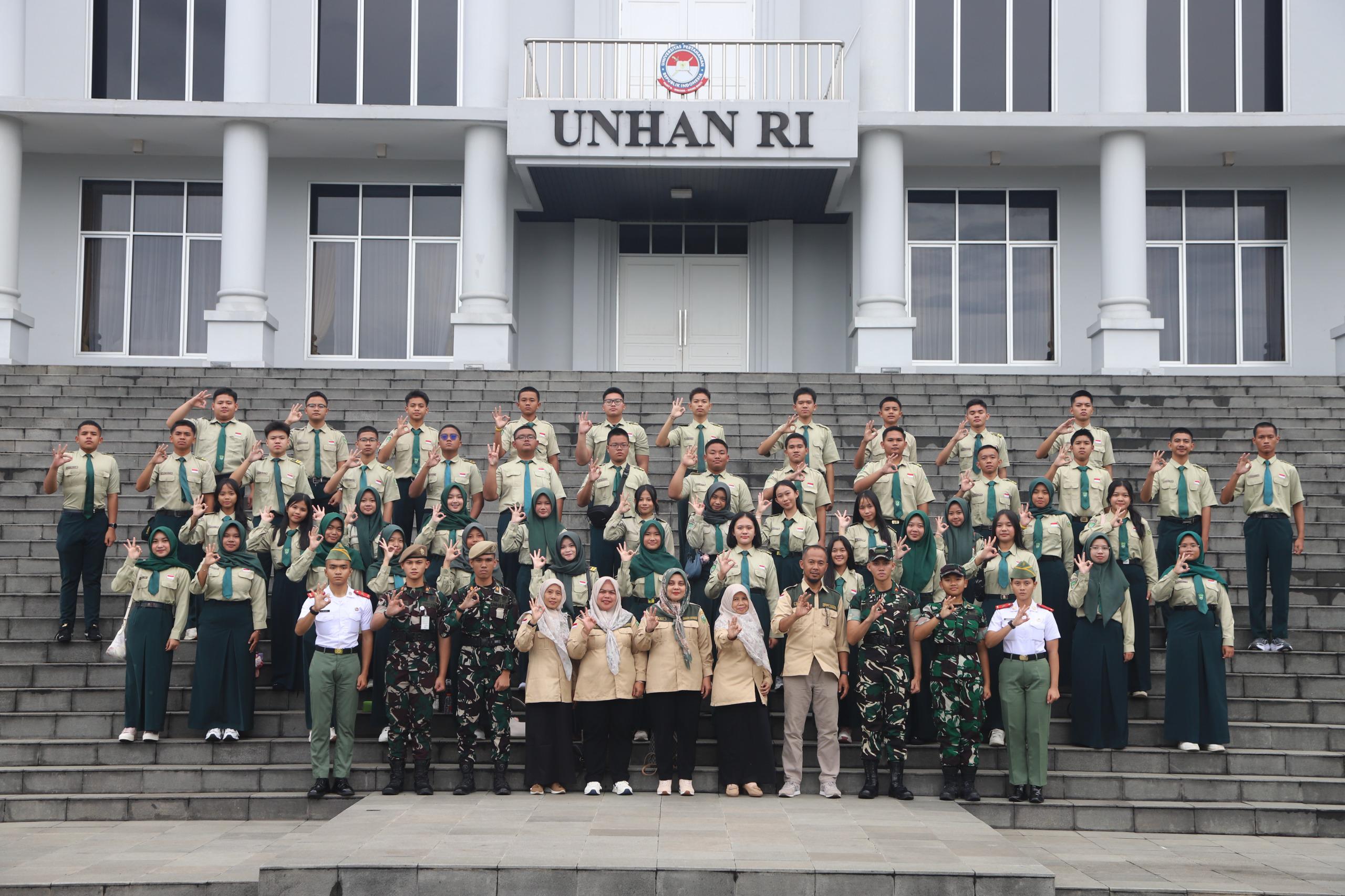 Bogor — Universitas Pertahanan Republik Indonesia (Unhan RI) menerima kunjungan edukatif dari 50 siswa-siswi SMA Negeri 3 Prabumulih, Sumatera Selatan, yang dipimpin oleh Kepala Sekolah Freni Listiyan, S.Pd., M.Si. Rombongan disambut oleh Kepala Biro Perencanaan, Kerja Sama, dan Hubungan Masyarakat (Karorenkermahumas) Unhan RI, Marsekal Pertama TNI Dedy Ghazi Elsyaf, M.Si., didampingi Pranata Humas Ahli Madya Kolonel Arm M. Taher AM., S.Pd., M.Han., serta Letkol Cpm Iwan Purwoko Irawan, Analis SDM Aparatur Ahli Muda Biro Keuangan dan Umum Subbidang Tata Usaha Unhan RI. Kunjungan ini bertujuan mengenalkan Unhan RI sebagai perguruan tinggi yang menyelenggarakan pendidikan di bidang pertahanan. Kegiatan penerimaan berlangsung di Aula Merah Putih Kampus Bela Negara Unhan RI, Sentul, pada Senin (12/1).